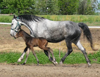is a 2002 Holsteiner mare by the Holsteiner stallion Riverman by Redfort who is by Rebel Z and out of the Holsteiner mare Foxfyre by Calme'. She is in the Main Mare book of the AHHA with scores only one point below the premium book. Her mother, Foxfyre, can be seen above as she is one of our broodmares.Sadly we lost Star to colic in July 2011, she is sorely missed! RIP my beautiful mare!